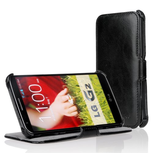 EasyAcc® LG G2 Flip cover Case housse de protection avec Support- Etui rabat cuir accessoire Pochette pour LG G2 Cuir coque (Ultra Slim,PU Cuir,Noir,Stand)