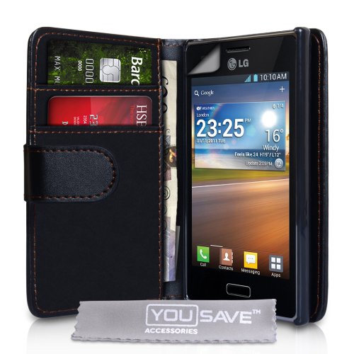 Yousave Accessories LG-FA01-Z103P Etui Portefeuille en PU Cuir + Stylet + Film de Protection pour LG Optimus L7 P700 Noir - faites vos achats en ligne sur