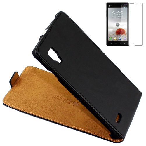 ebestStar - Pour Smartphone LG OPTIMUS L9 P760 / P765 / P768 - Housse Coque Etui en PU cuir Slim (comme du vrai / véritable) de couleur NOIR, qualité supérieure, à rabat, clappet, ultra fine (ultra slim flip leather case), fermeture aimantée + 1 film de protection d'écran transparent