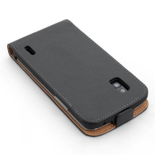 Housse en cuir à rabat pour LG Nexus 4 E960 - noire + film de protection d'écran - 31010403